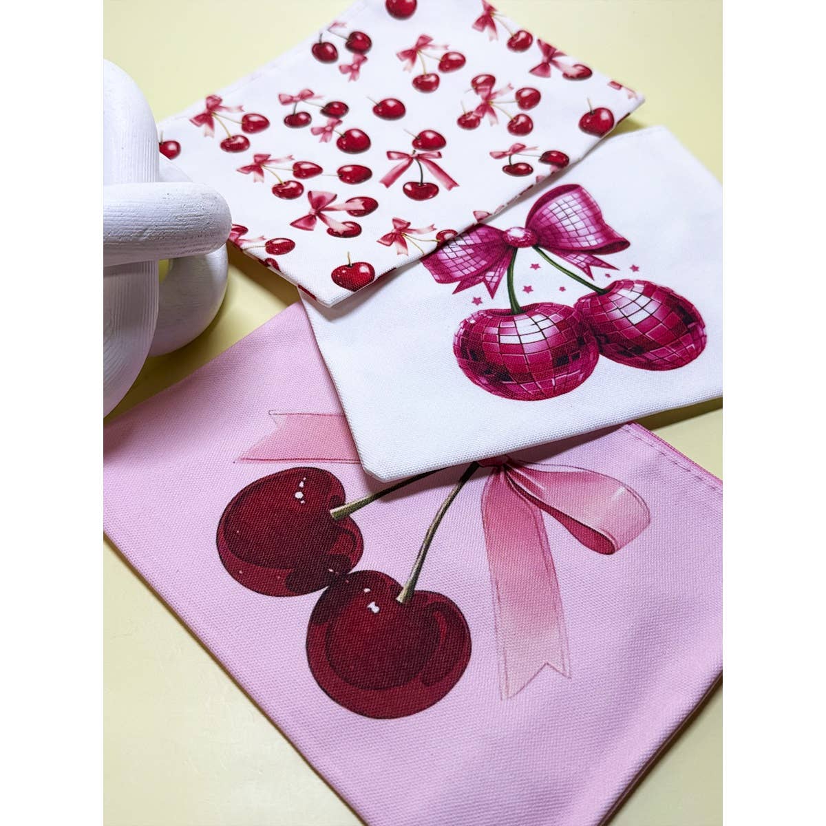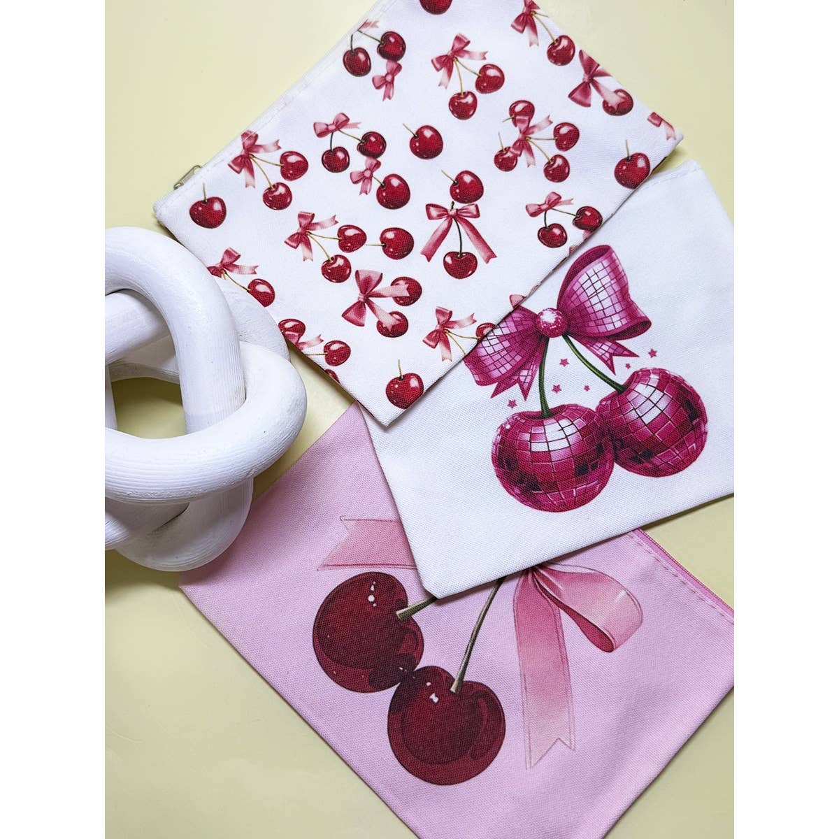 Cherry Printed Multi Use Purse coin pouches as one pack 8.5 Inch W x 6.5 Inch L 3 Designs Coin Purse Assorted